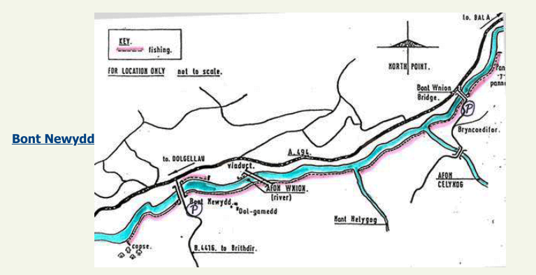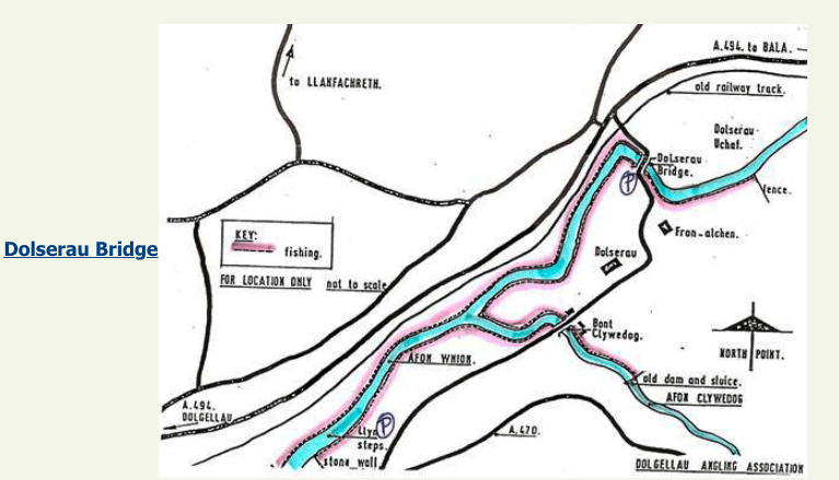 The beat starts about 13 miles from Bala Town down the A494. You can park near Bryncoedlfor Bridge and fish down by following the old railway line to Dolgamedd. Alternatively you can park on the roadside near Dolgamedd Caravan Site and fish upstream passing the viaduct. Please watch your step as it can be dangerous and slippery.