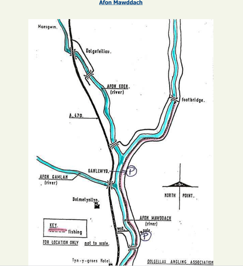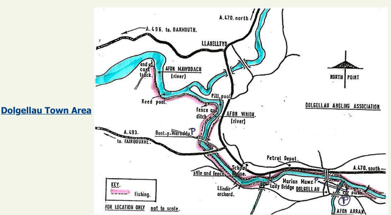 The beat continues up the Wnion on both banks after Pill Pool apart from a stretch which is right bank only between Lady Bridge and the main bridge into Dolgellau.